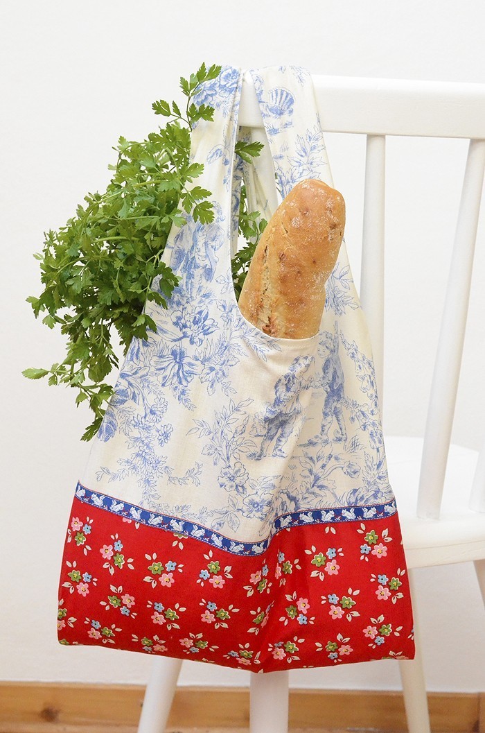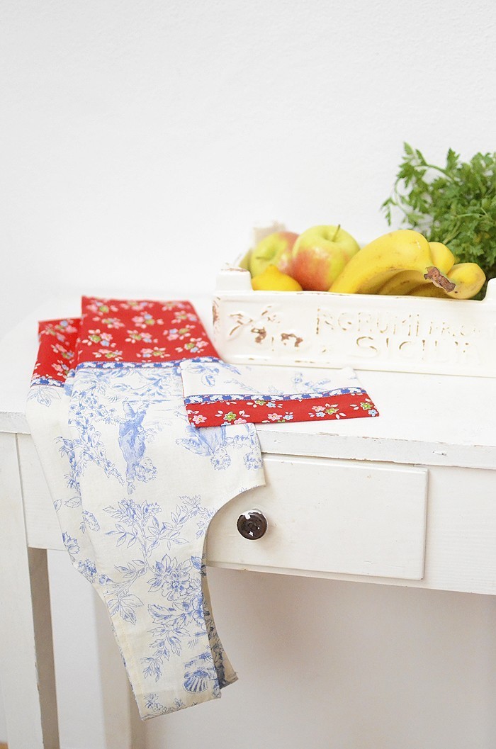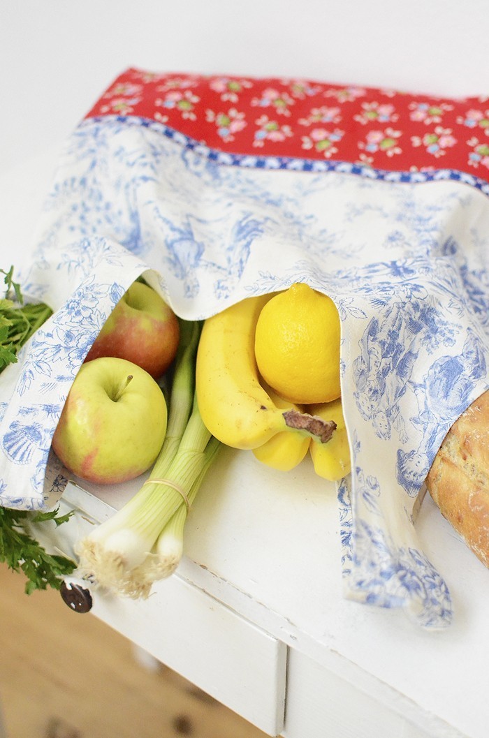I first discovered Lisa Cox of A Spoonful of Sugar a few years ago and I’ve been following her work since then. Everything she makes is so very pretty! I adore her sweet style and great sense of color and feel for pattern. She creates the most adorable craft projects! Lisa has just released her very first book – A Spoonful of Sugar : Sew 20 Simple Projects to Sweeten your Surroundings Zakka Style and I am thrilled and honored to be part of her Blog Tour! The book is devided into five sections, each section contains 4 projects that range in difficulty. It’s a beautiful mixture of home, kitchen, craft room and projects for kids. I fell in love the instant I saw the Handy Eco Shopper and knew that this bag would be the perfect project for my latest Toile du Jouy addition. This lovely cotton, combined with the red Bouquet Print of my newest fabric range Backyard Roses and the adorable squirrel ribbon I bought in Berlin many years ago is just a dream! This bag is very easy to sew and features so-called french seams for added strength and a neat finish. It was actually intended as a gift, but I think I have to keep it – and just sew another one!