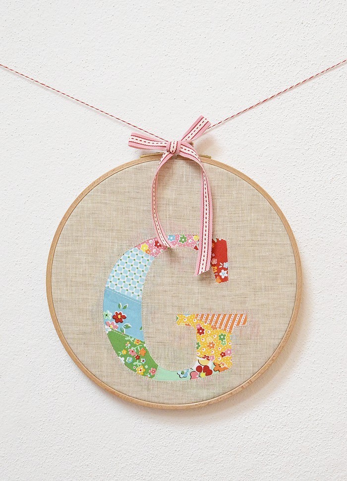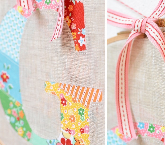 A few days ago my Backyard Roses strike offs arrived. Opening the package was at least as exciting as the last time! I couldn’t be happier how the prints turned out! These colors, I’m in love!!! There are a few little tweaks to make, but that doesn’t mean I can’t already use them, right? I decided to whip up a few last minute christmas presents like this embroidery hoop with an reverse applique letter, that will soon be decorationg a sweet little girls bedroom…