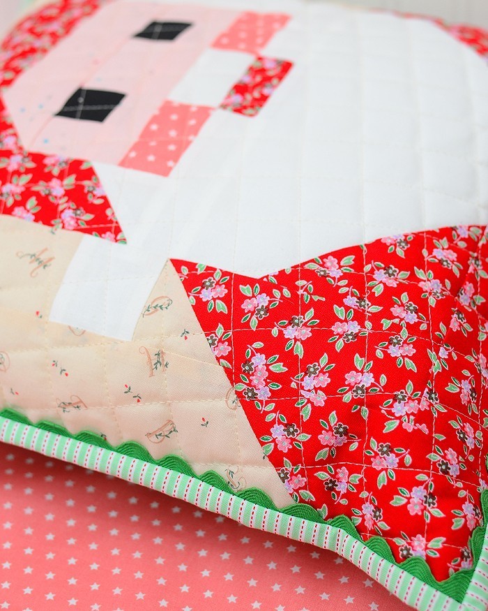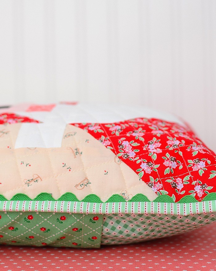 I enlarged the 12″ block and turned it into a cute pillow – perfect to give away as a present or to add a little Christmas spirit to your home…
