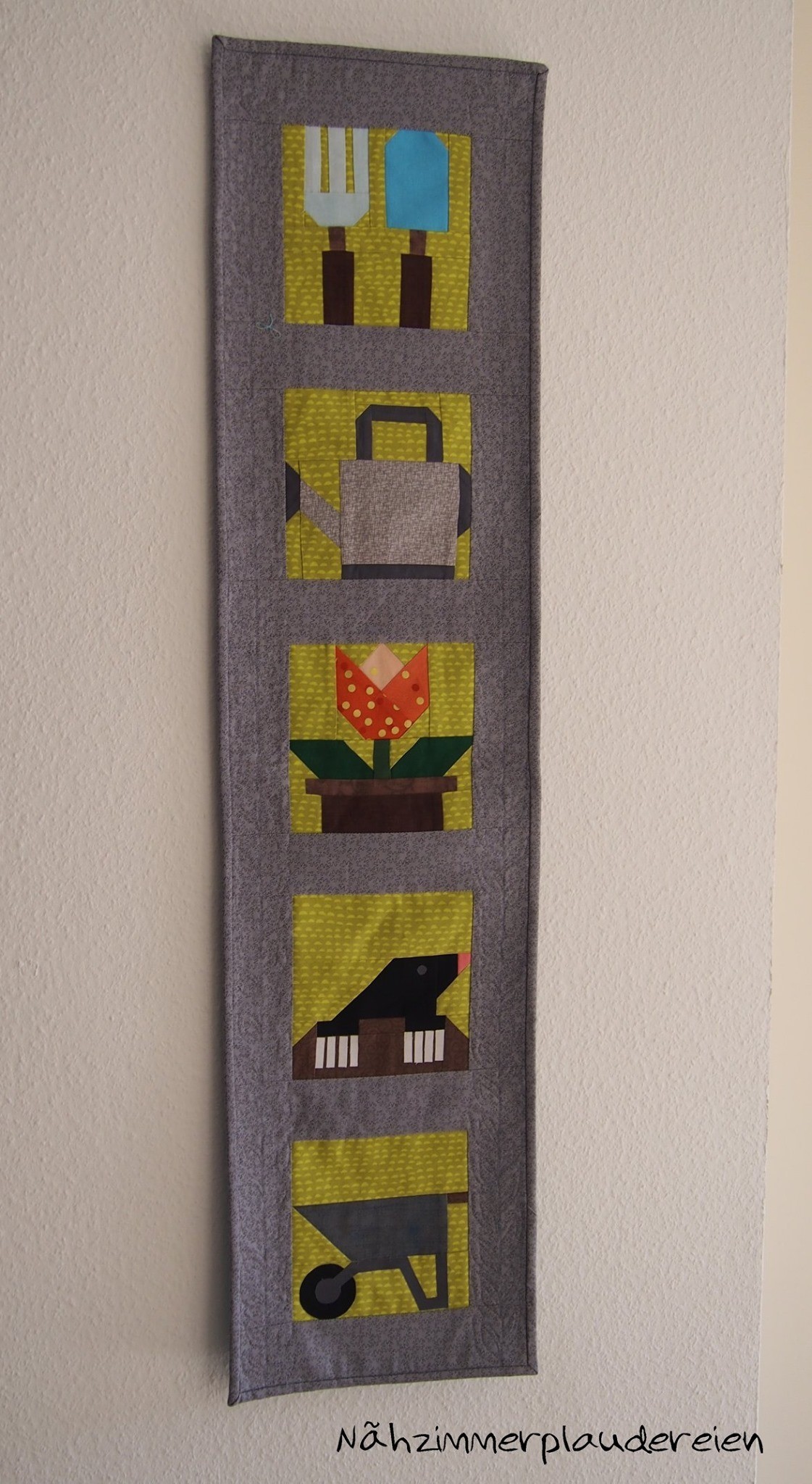 [Dieser Beitrag enthält Werbung] Pattern no. 3 is the Fork and Trowel quilt pattern – essential gardening tools!