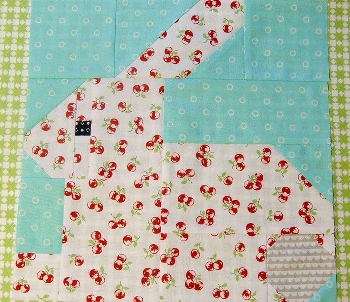 endlich sind die Oster-Anleitungen soweit! Als erstes zeige ich euch Hippity Hoppity, die leicht abgewandelte Version meines populären Oster Mini Quilts von letztem Jahr! Ich weiß, dass viele von euch sich eine größere Version dieses Quilt Blocks gewünscht haben und danke euch für die Geduld! Dieser Baby Quilt misst 38 ½” x 50 ½”, die Blöcke haben eine fertige Größe von 10″ 10″ und sind perfekt für kleinere Oster-Projekte wie Tischläufer, Platzdecken und natürlich Kissen geeignet. Nächste Woche zeige ich Euch, wie ihr ein Häschchen-Kissen mit scrappy Umrandung macht!