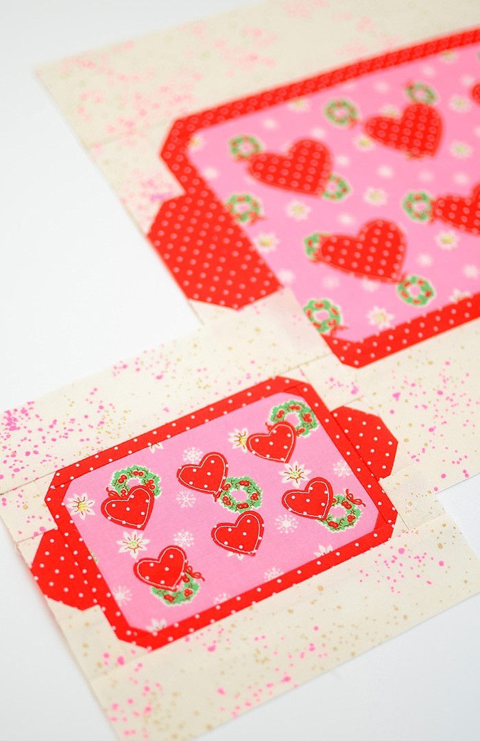 PLEASE NOTE: This pattern contains only diagrams to describe the individual steps. It uses instructions for cutting out the pieces with a rotary cutter and quilting ruler and does not contain actual size templates. The blocks are made using traditional machine piecing and appliqué techniques, there’s no paper piecing required.