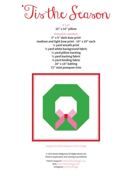 © Nadra Ridgeway, ellis & higgs. All rights reserved. This pattern is for personal use only. IT IS ILLEGAL TO SELL, COPY AND SHARE THIS PATTERN WITH YOUR FRIENDS OR QUILTING GROUPS.