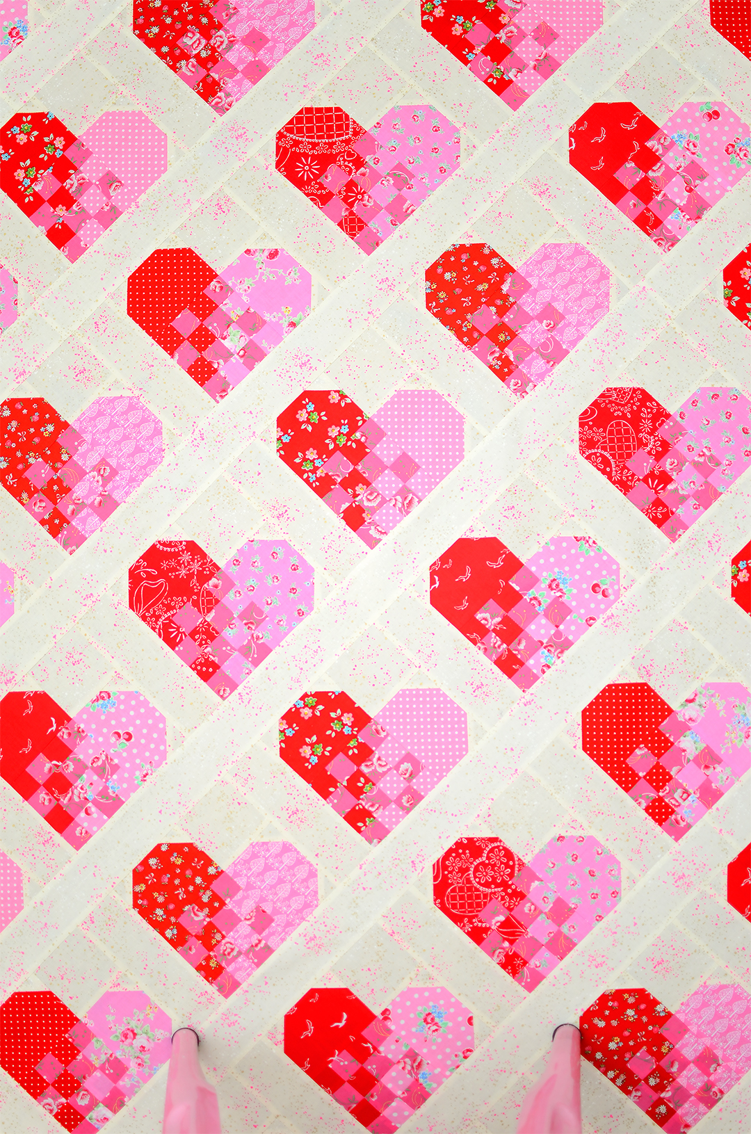 Heart quilt pattern - Grid Heart mini quilt pattern
