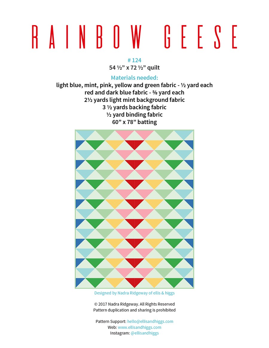 This listing is for a digital PDF copy of the Rainbow Geese Quilt Pattern.