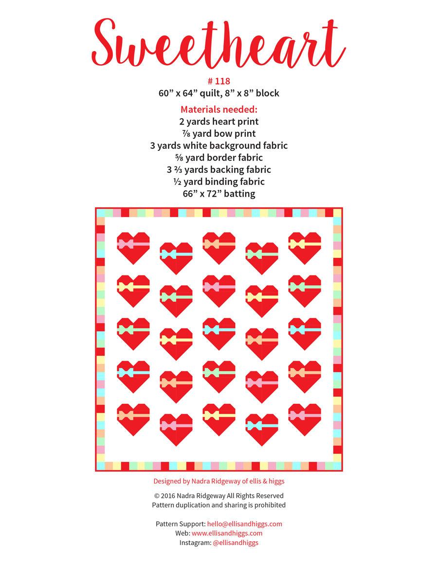 This listing is for a digital PDF copy of the Sweetheart Quilt Pattern.