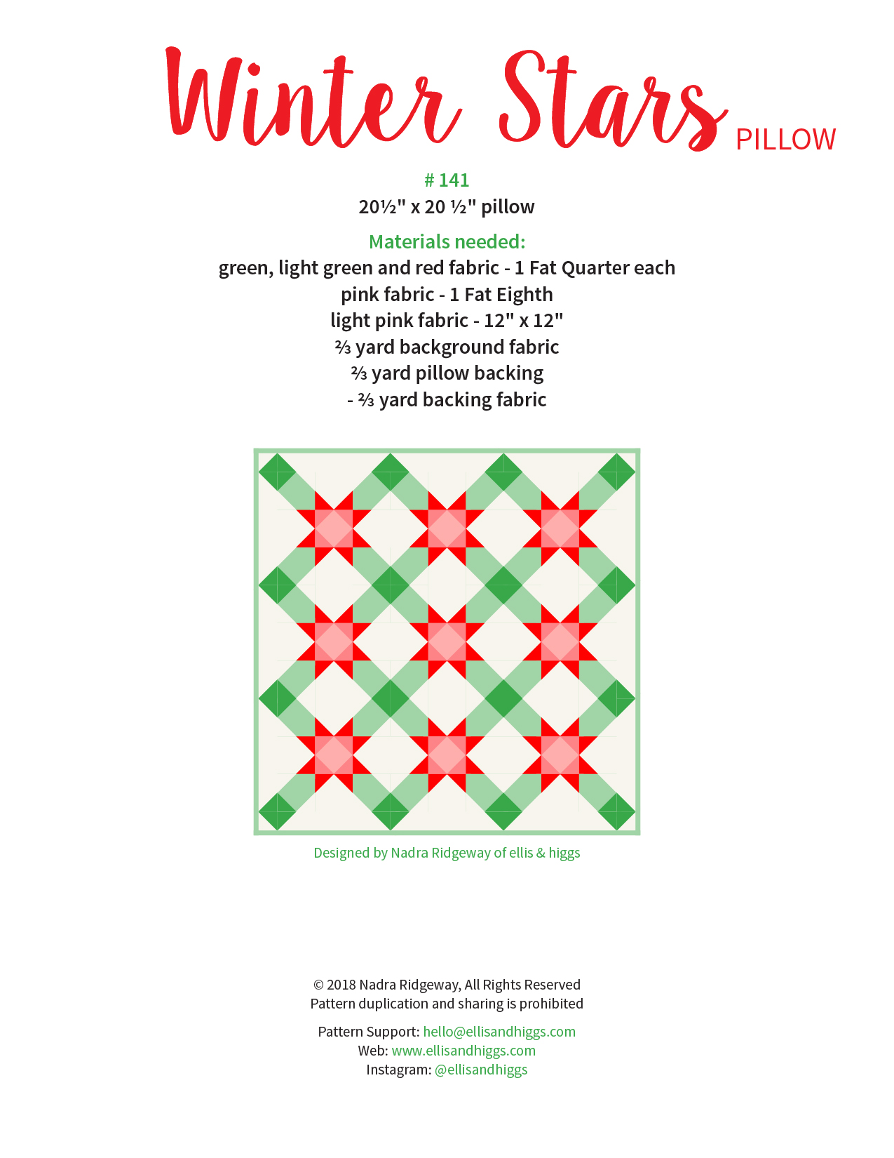 This listing is for a digital PDF copy of the Winter Stars Pillow Pattern.